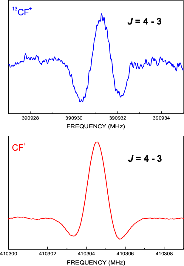 CF+ have been observed. The recent observation of the J = 1-0, 2-1, and 3-2 rotational transitions of CF+ toward the Orion Bar region (Neufeld et al. 2006) together with the