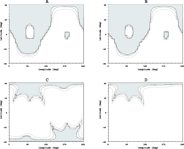 ( A) and B)) were obtained from the epochs method, the lower-left plot C) was obtained from the amplitude method and the lower-right plot D) is the result from the simultaneous fit in both epochs and amplitudes. The continuous lines refer to |