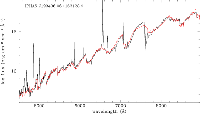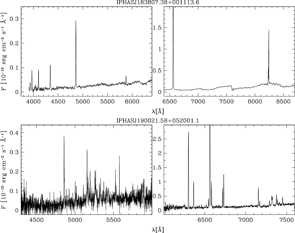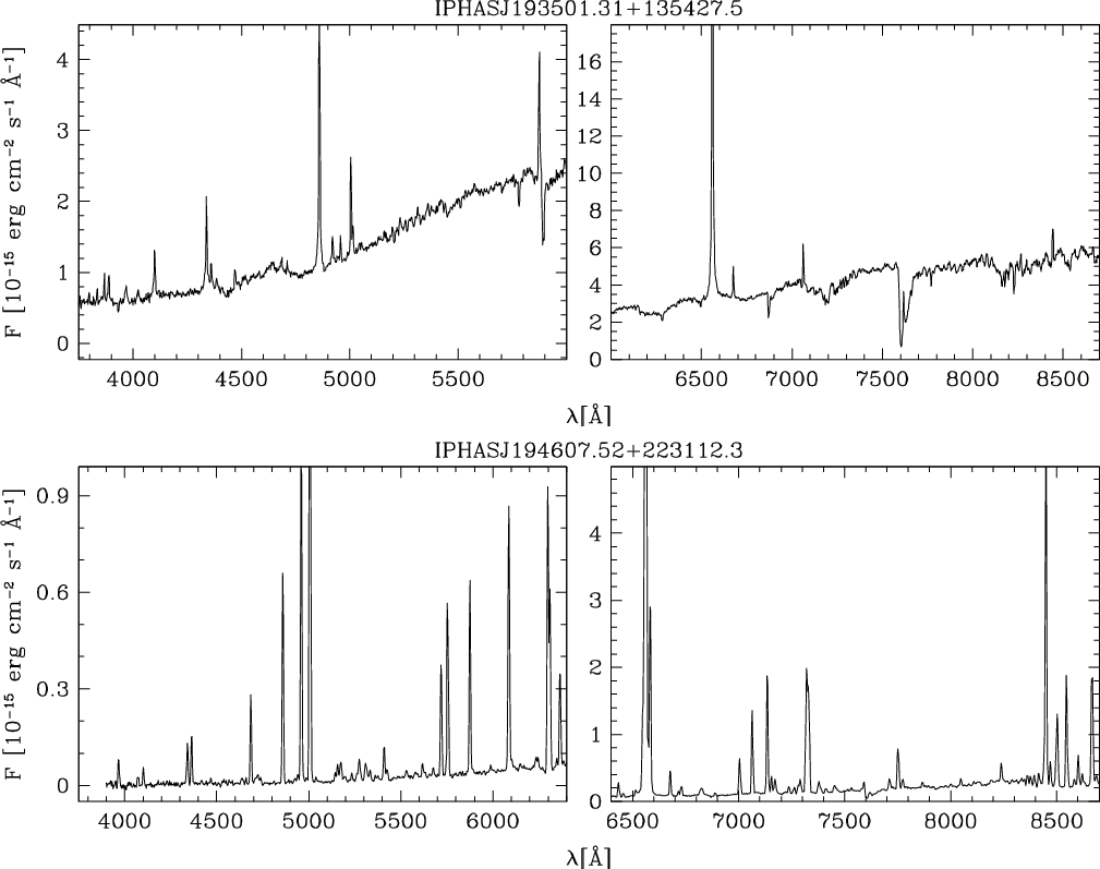 Figure 3: Spectra of the S-type new symbiotic star IPHASJ193501.31+135427.5 ( top), and of the D-type new symbiotic star IPHASJ194607.52+223112.3 ( bottom). |