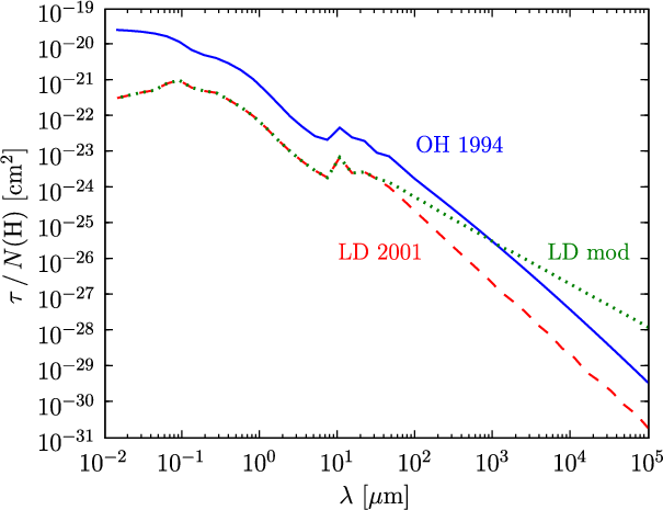 divided into concentric shells. We used the grain size distribution of Mathis et al. (1977) (MRN) with two types of dust grains: carbonaceous and silicate (the grain model is further discussed in Sect. 2.2.4). The choice of using the MRN distribution implies that the abundance of very small grains (with radii less than