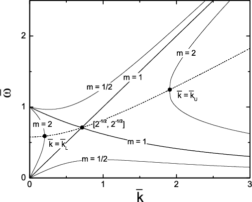 The coupled dispersion equation (Eq. (1)) gives two positive roots for