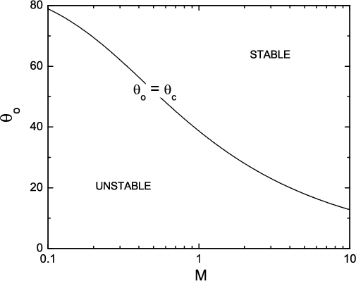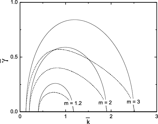 When this is satisfied there is a band of unstable wave numbers lying between the two roots of