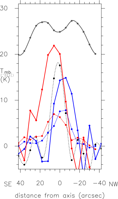 In the present study we will concentrate on the inner 60'' section. Already early on Muders & Schmid-Burgk (1992) had noted this section, as seen in C18O(2-1), to be enveloped by a somewhat symmetrical cylindrical structure that seemed to undergo rotation about the outflow axis.
