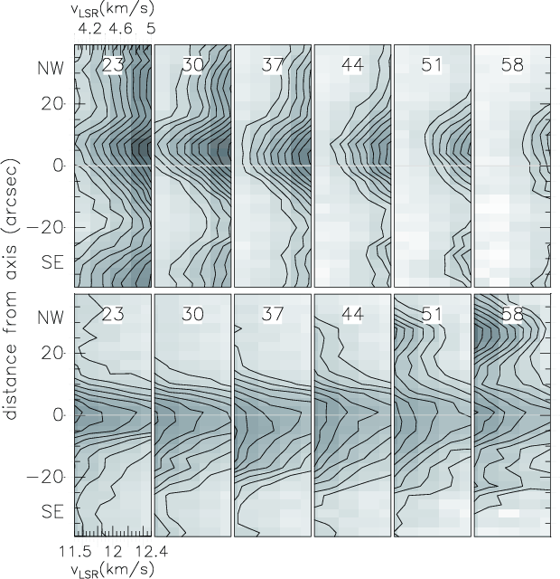The first tentative evidence of such an outflow rotation was presented by Davis et al. (2000) at infrared wavelengths. They reported velocity shifts of a few km s-1 across the HH212 jet at distances of about 104 AU from the ejecting object, using spectral line observations of the molecule H2.