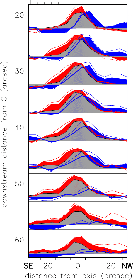 - the rotation is observed out to at least 25 000 AU downstream from the source;