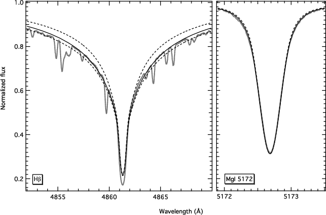 we compared the observed hydrogen line profiles with synthetic spectra computed with S YNTH3 (Kochukhov 2007). In the given temperature range the hydrogen lines are very sensitive to temperature variations, are less sensitive to