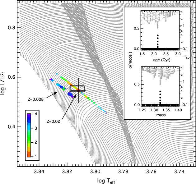 both a solar composition grid and a low Z grid. The convective envelope mass of the best-fit model in the solar composition grid is