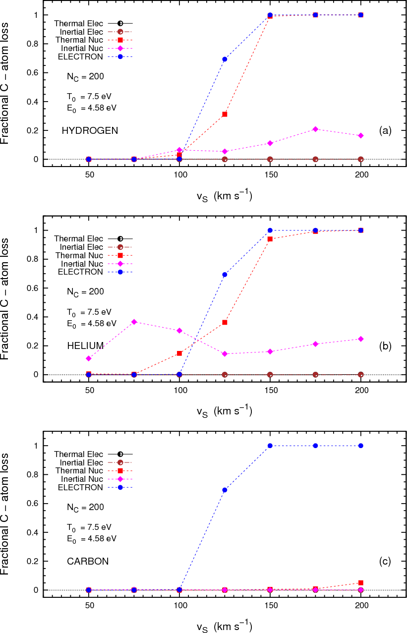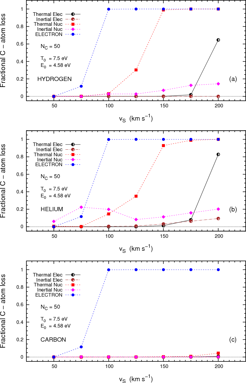 nuclear and electronic interactions, above the threshold for carbon