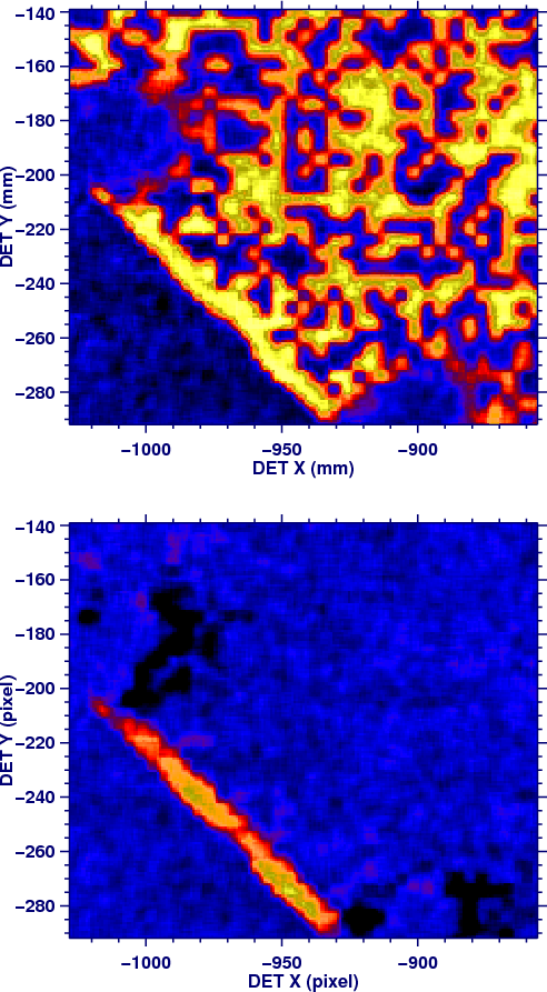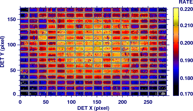 To obtain an image of the detector plane (shadowgram), each DPH file is integrated in a selected energy interval. Then, to identify the pixels that are disabled during the integration time or that are too noisy, the corresponding housekeeping enabled/disabled detector maps (taken at times immediately before and after the DPH acquisition time) are checked.