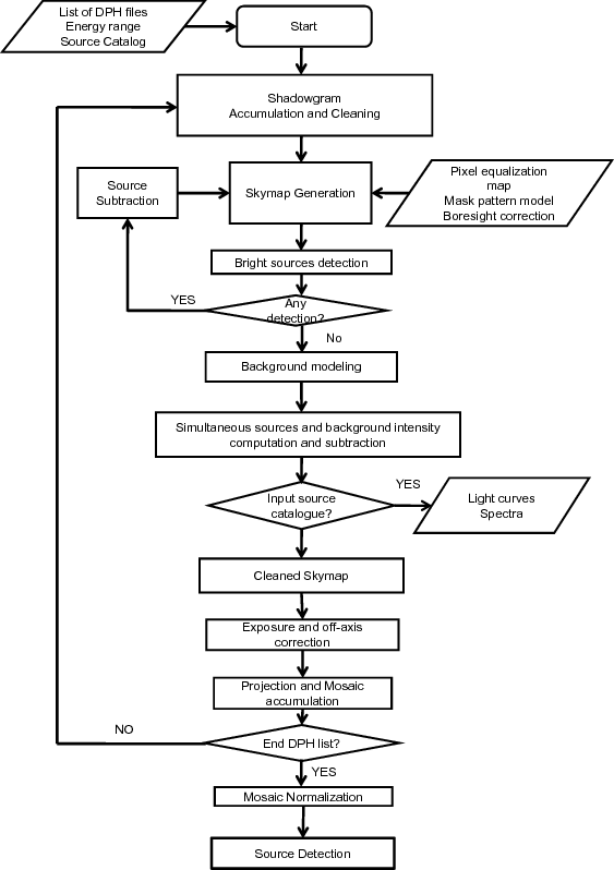 Intermediate products are used to generate the calibration files needed to reduce the systematic errors in image reconstruction (Sect. 4). The main analysis steps implemented in the BATIMAGER are described in detail in the following subsections and illustrated in Fig. 1 with a flowchart.