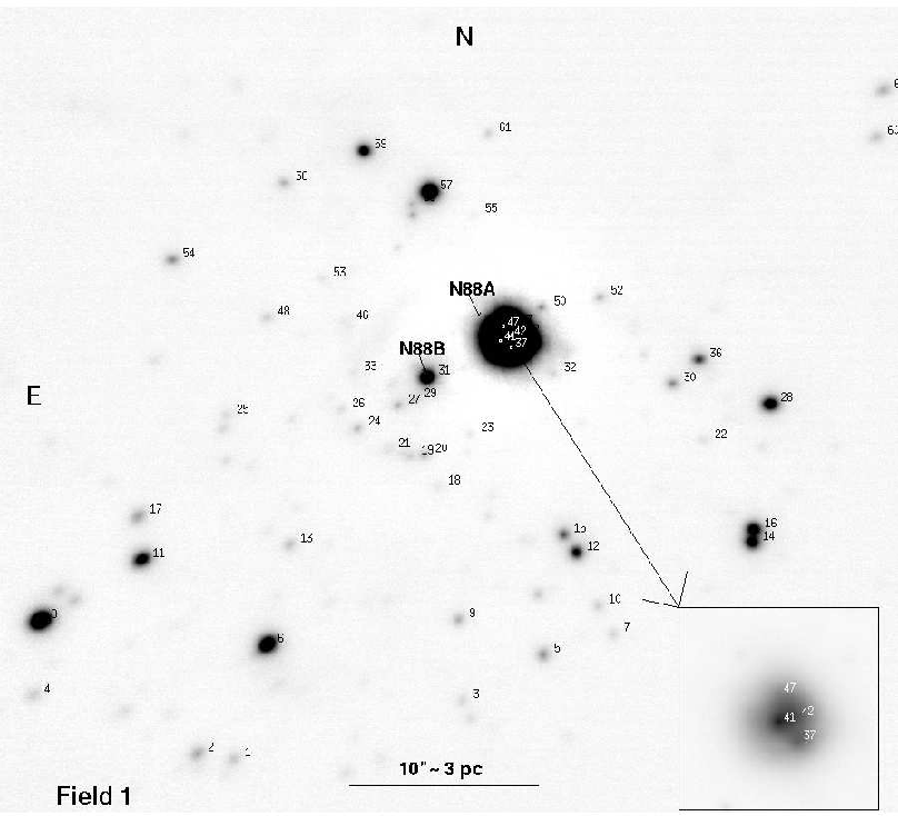 Results. Our IR-data reveal in the N88 area an IR-excess fraction of
