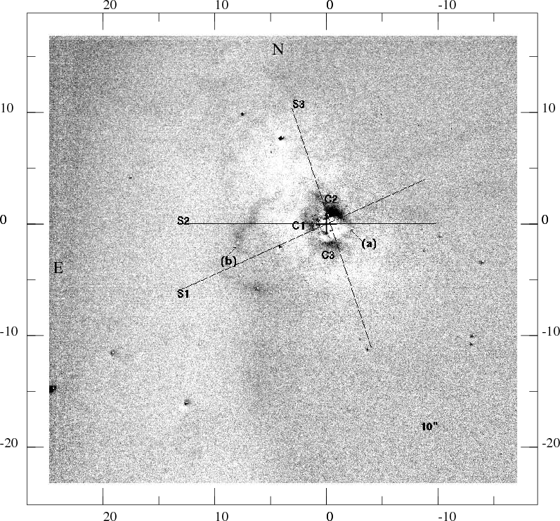 east of this star, a heavily embedded core is detected in the L'-band. This core with L'