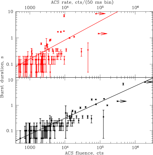 the existence of a correlation between the burst fluences and durations