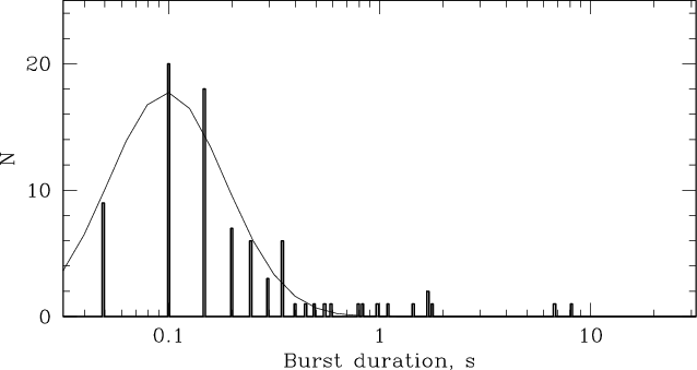1-10 s duration, which occasionally exhibits pulsations with the