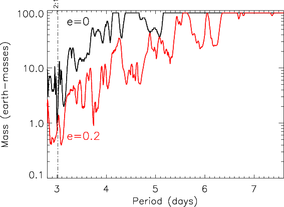 3.4-4.1 days can be excluded. Planets with masses greater than 0.3-1.0