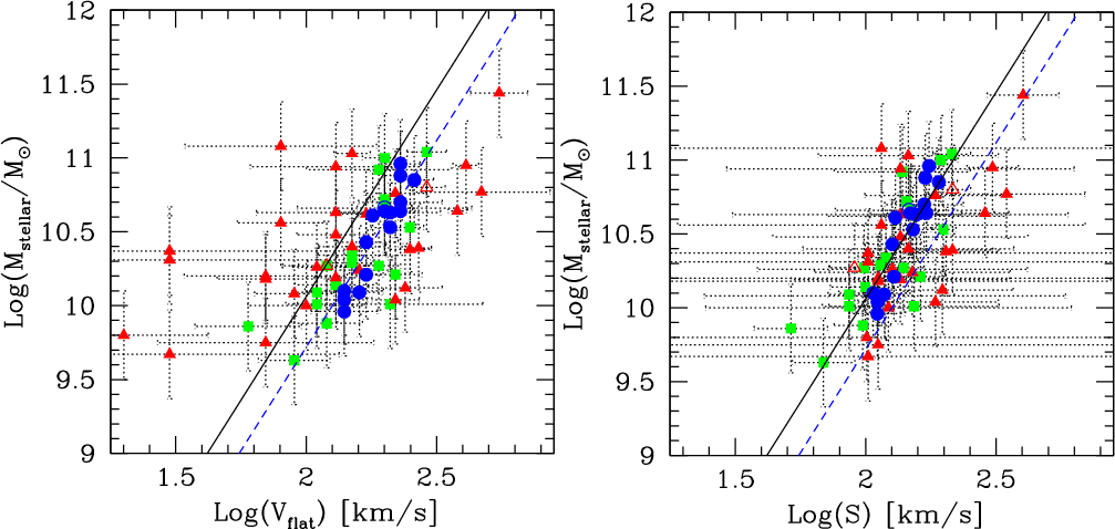 dispersion on the scatter of the relation, using the kinematic tracer S suggested by Kassin and collaborators.