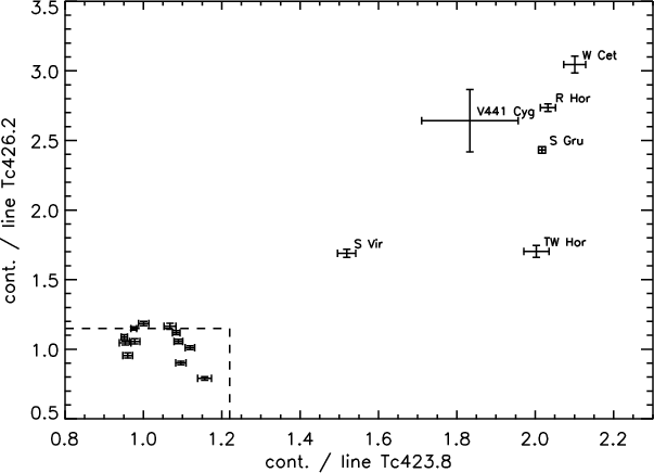 Tc-rich stars. However, being above this limit is not sufficient for a star to