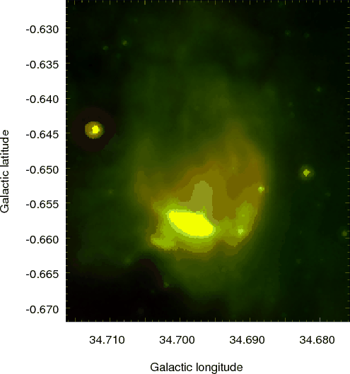 Two-color image of the HII region G034.8-0.7 containing
