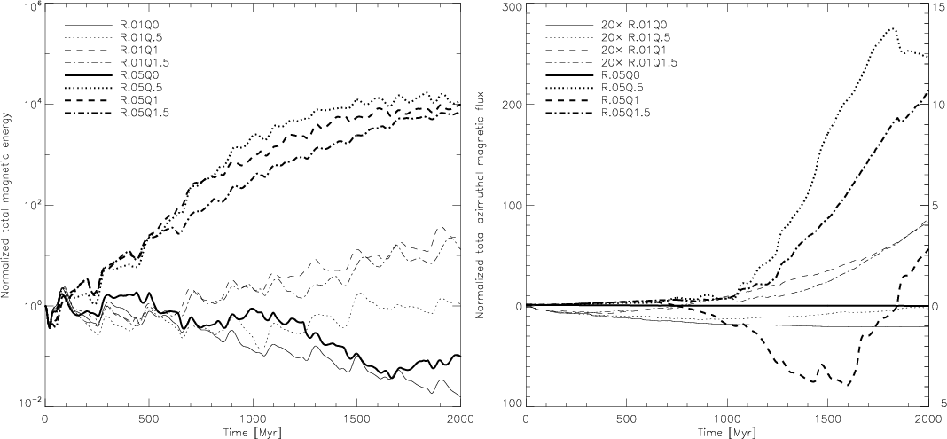 fueling the growth in the magnetic energy and flux of these galaxies is
