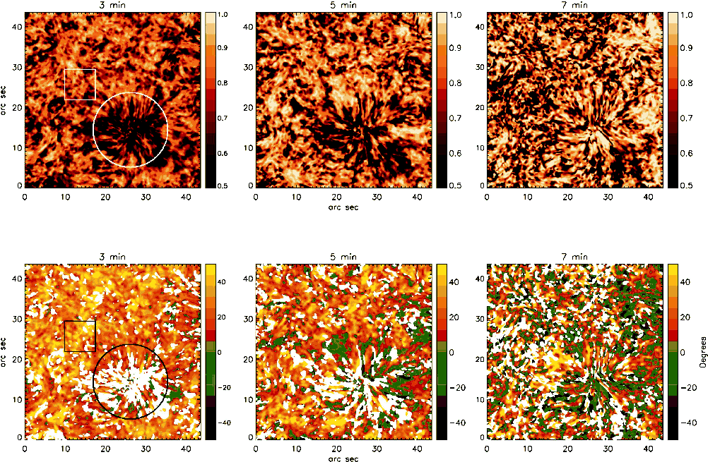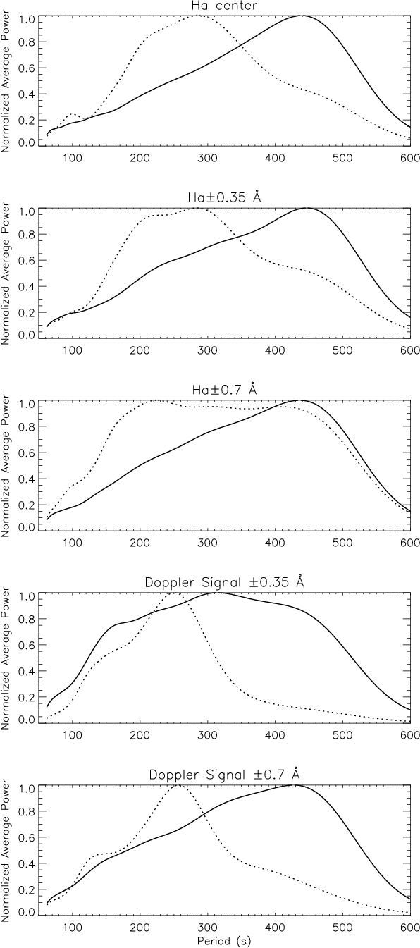 The distinct properties of the network and IN have been the subject of intense study. The NBPs exhibit long period oscillations, around 300 s or higher (Deubner & Fleck 1989; Lites et al. 1993; Cauzzi et al. 2000), which are attributed to either magnetoacoustic waves (Deubner & Fleck 1990; Lites et al. 1993) or to their erratic motions (Kneer & von Uexküll 1986; von Uexküll et al. 1989). The same studies find that the most prominent periodicity in the IN is in the 3 min range (5.5 mHz), while higher frequencies even up to 40 mHz or more (De Forest 2004; Fossum & Carlsson 2006) have been reported. The oscillations in the IN have been attributed to standing or evanescent acoustic waves. Along the mottles, oscillations with periods around 5 and 6 min have been detected (Tziotziou et al. 2004; Tsiropoula et al. 2009) and it seems that their dynamics differs from that of the IN they obscure. Although this is the behavior generally accepted for the oscillations in the aforementioned spatial regions, different results have also been reported (see the introduction of Tsiropoula et al. 2009), which may stem from the use of different diagnostics (different spectral lines and thus different heights of formation, filtergrams or slit images, different instruments etc.) and different methods (selection of regions and averaging).