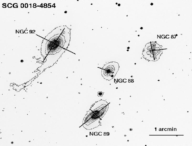 SCG0018-4854 is an extremely compact group of four late-type galaxies: NGC 92,