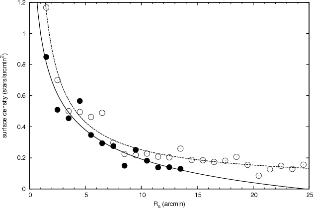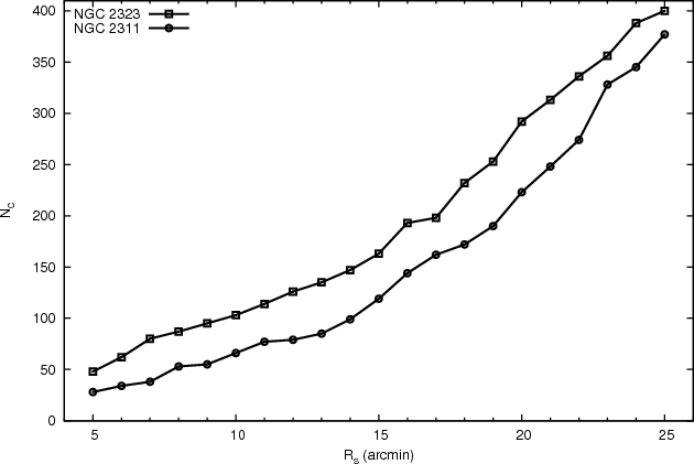 number of stars belonging to the cluster is denoted by