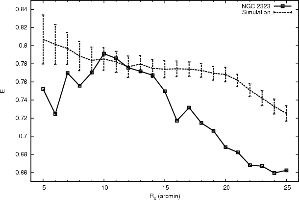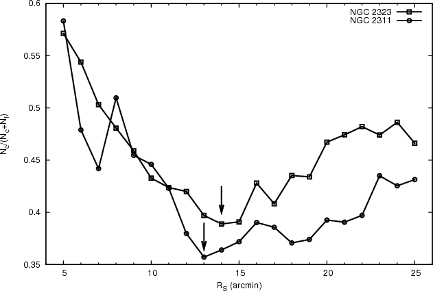 14 arcmin for NGC 2323 and