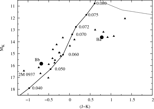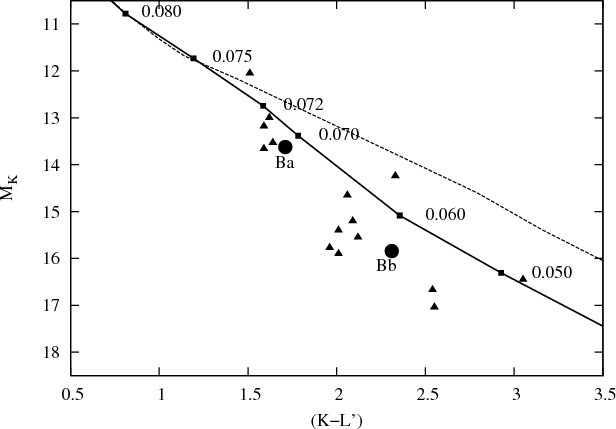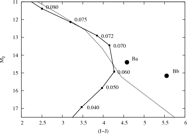 Indi Ba and Bb respectively, with surface gravities of log g =
