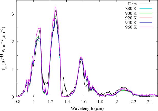 we find effective temperatures of 1300-1340 K and 880-940 K,