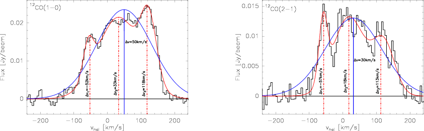 predominantly positive in both 12CO(1-0) and 12CO(2-1), suggesting that gas
