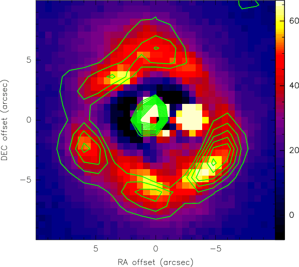 visible in ionized gas, which appears as stars in the NIR, and with no