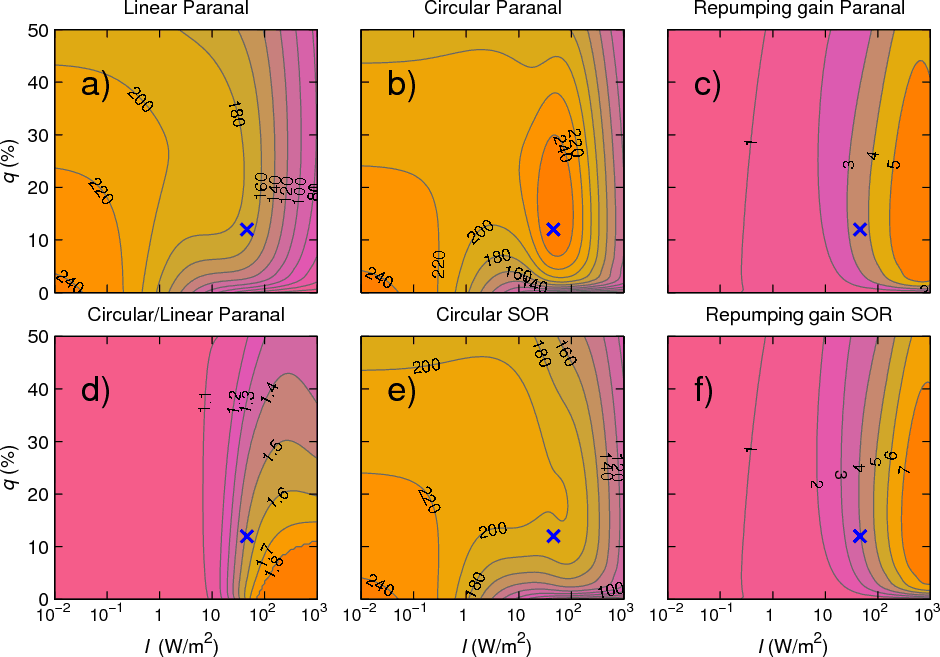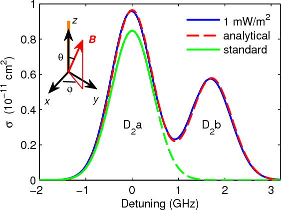 Bradley 1992, Fig. 11, or Fig. 1 of this work). When the D2a transition is excited by circularly polarized light at high irradiance (i.e. optical power density, unit W/m2), a large fraction of atoms is pumped into the