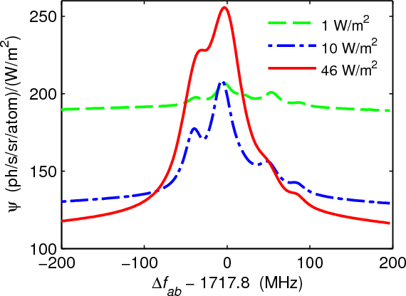 The effective sodium return flux depends on the environmental conditions such as collisions with constituent gases, temperature, and the geomagnetic field. At higher irradiance, the atoms are driven away from thermal equilibrium, and it is necessary to take effects into account such as saturation, optical pumping, and the recoil caused by radiation pressure. Understanding the complicated interplay of these effects and obtaining quantitative values of the fluorescence efficiency requires numerical simulations. A commonly used method is the solution of the density matrix evolution (Bloch equation) of a multilevel atom.
