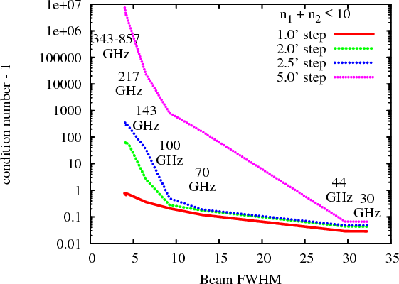 - One peculiarity of our approximation is that only three parameters of the parametric model contribute to the window function. It depends only on the scale (beam solid angle) and two components of shear. The other four parameters in the model do not contribute: the amplitude is an overall calibration; the position offsets translate to phases in Fourier space, and cancel in the multiplication of complex conjugates; and the rotation is integrated out. Indeed the beam covariance matrix in this case has only three substantial eigenvalues.