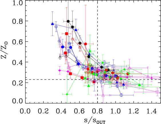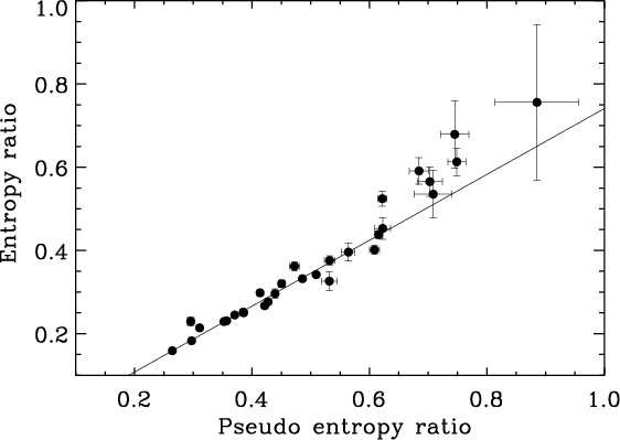 and the ``pseudo'' entropy ratios. We fitted the points in Fig. A.1 with a linear model taking into account the errors on both coordinates (with the IDL Astrolib procedure FITEXY.PRO