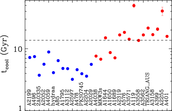 of the clusters population. There are some indication that the cluster population is bimodal (Cavagnolo et al. 2009), but there are also some intermediate objects which are not easily classified (Paper I).