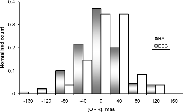 errors within the accuracy of the catalogues used. Using the UCAC2 as a