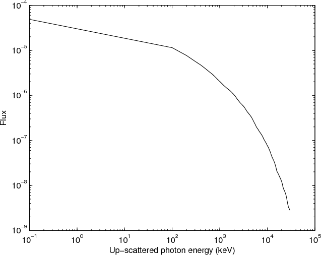 Might ICS yield observable contributions in other wavelength ranges? Flare positrons, for example, would scatter cm wavelength photons into the optical or near UV ranges. In the corona the primary photon number density would be extremely low, making an observable flux highly unlikely, unless the relativistic electrons or positrons lay within an optically thick microwave source. Such a situation would need a much more detailed evaluation of the primary radiation field than we have carried out here, along the lines of McClements & Brown (1986). Other possibilities, like an ICS contribution to the flare UV continuum, appear potentially interesting but would take place in the deeper atmosphere and would similarly require a different treatment of the primary radiation field.