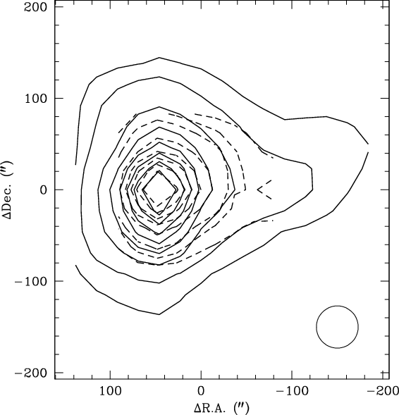 located about 22'' east of the IRAS source with major and minor