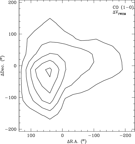 molecular cloud is fully covered by our CO(J = 1-0) maps and, traced by this line, extends over a region of