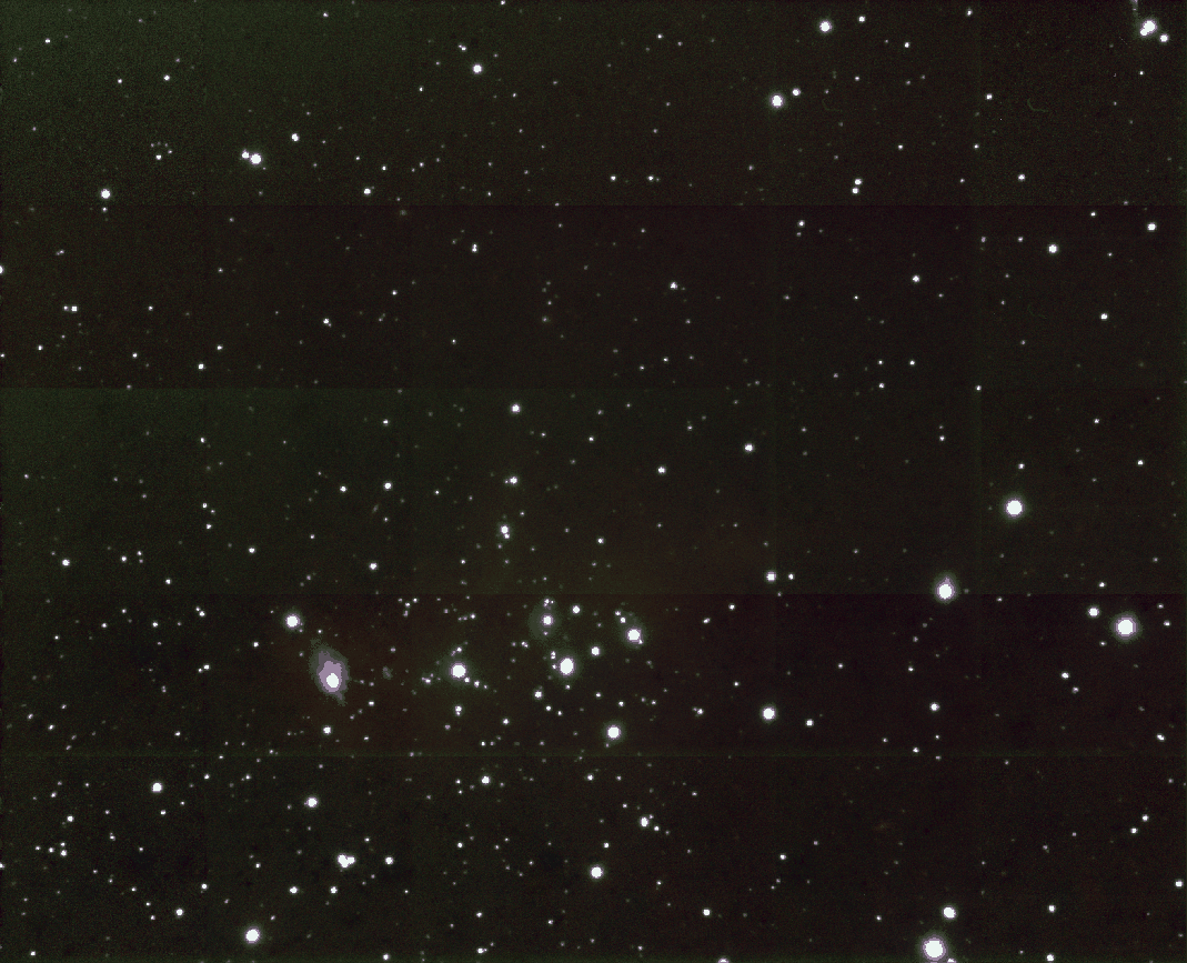 Subsequently, many infrared star clusters and stellar groups have been found during surveys towards directions of optical and radio HII regions. Testi et al. (1998) found sources around Herbig AeBe stars, part of them related to reflection nebulae. Soares & Bica (2003,2002) studied four low-mass star clusters in the CMaR1 molecular cloud, three of them related to optical reflection nebulae. Dutra et al. (2003) and Bica et al. (2003) investigated more than 3000 optical and radio nebulae with 2MASS (Skrutskie et al. 1997) and found 346 new embedded star clusters, stellar groups, and candidates.