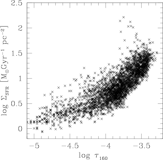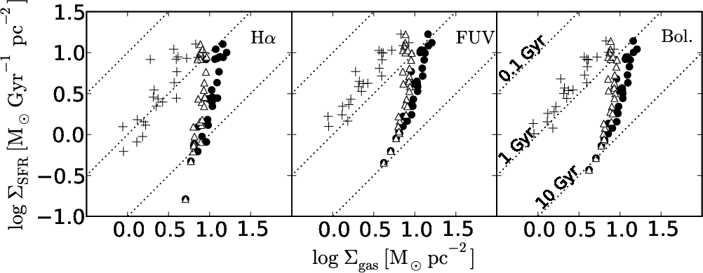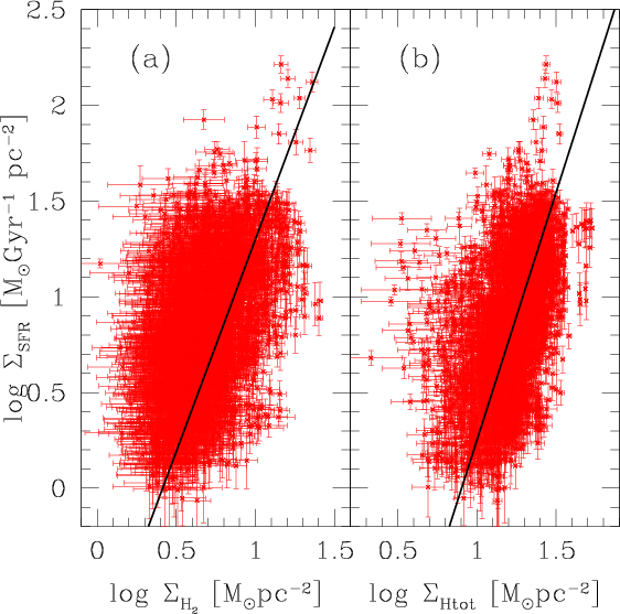 Kennicutt-Schmidt (KS) law to relate the surface density of gas to the