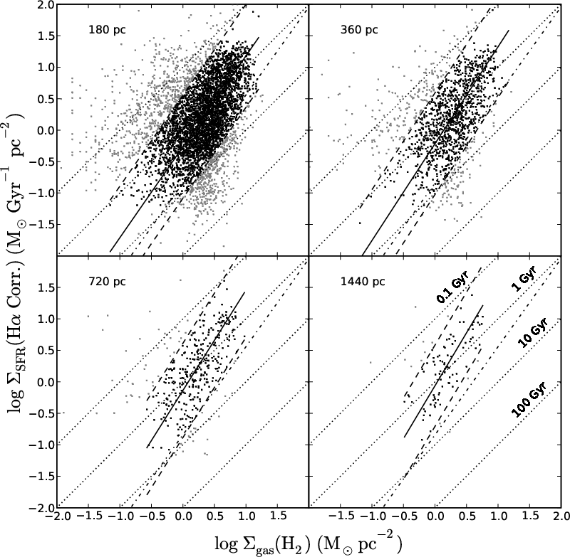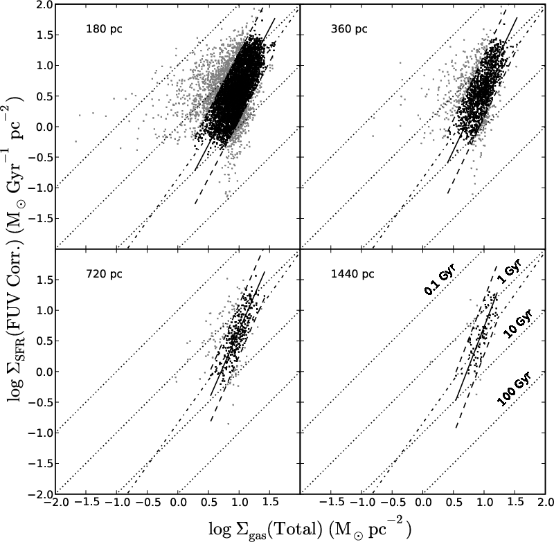 0.1. Locally, at a spatial resolution of 180 pc, the