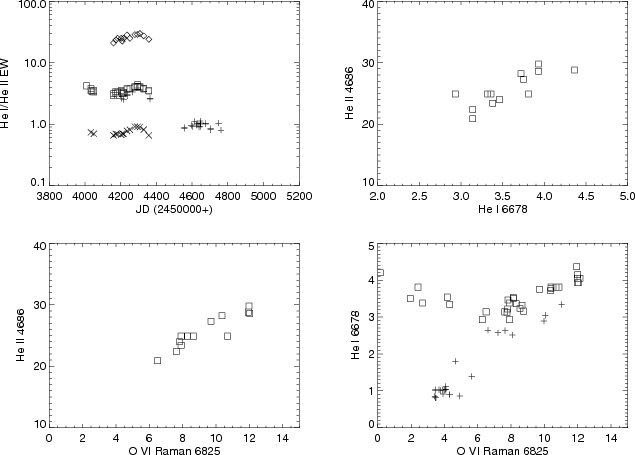 He I 6678, 7065 relative to the O VI Raman 6825 Å