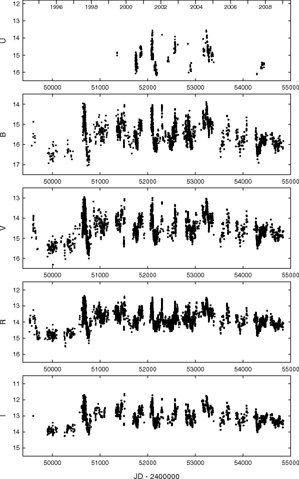 Figure 1: Optical light curves of BL Lacertae in 1994-2008. |