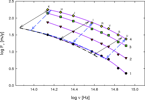 photometry obtained during 1999-2001, led Hagen-Thorn et al. (2004) to the conclusion that the spectrum of the variable source in BL Lacertae can be described as
