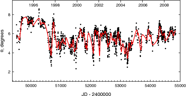 fast flares in the light curve (i.e. the noise in the angle curve and the thickness of the ring in Fig. 7c)