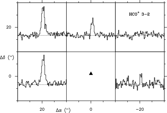The condensations associated with HH objects have also been studied in the case of HH 2 in lines of 12 molecular species (Girart et al. 2002), in addition to HCO+ and NH3. These observations confirm that the condensations are as dense and cold as indicated by the previous HCO+ and NH3 observations. This work also makes clear that the chemistry of these condensations is distinct from that of the ambient cloud. Viti et al. (2006) show that this chemical anomaly is shared by at least five other HH objects. While subsequent and more detailed studies of HH 2 (Girart et al. 2005; Lefloch et al. 2005) show that the region ahead of the shock is more complex than previously considered and that some dynamical interaction with the HH shock may be occurring, significant parts of the condensations near HH 2 are confirmed to be quiescent, cold, and dense.