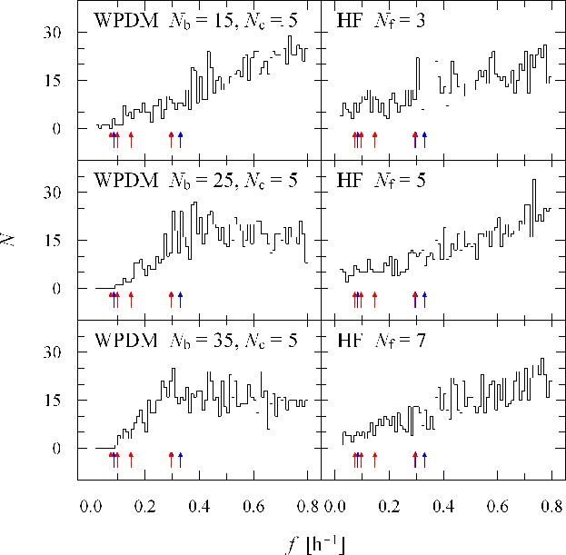others, which are practically impossible to generate from noise at f < 0.15 h-1. On the other hand, one should bear in mind that all the solutions we list were found at sufficiently low