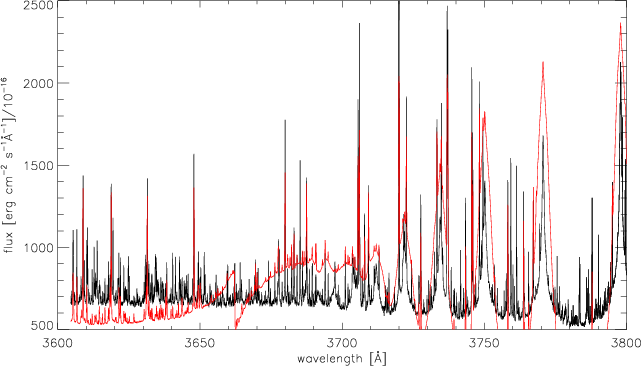 jump and the Balmer lines from H9 on.